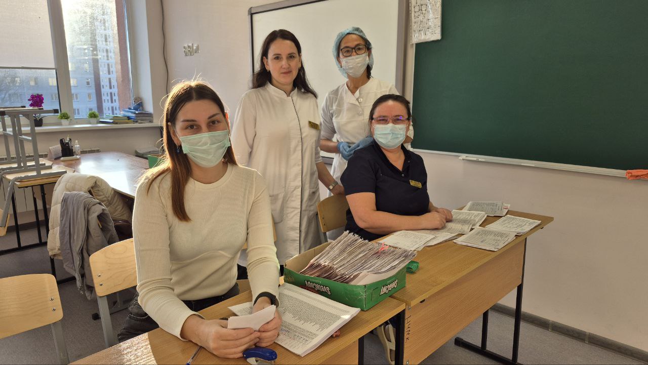 Будущие фельдшеры, медсестры и медбратья прошли комплекс обследований, не отрываясь от учебного процесса. Для них развернуты временные пункты осмотра, где можно сдать анализы, пройти ЭКГ и осмотр гинеколога.