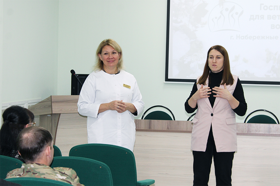 В Госпитале для ветеранов войн г. Набережные Челны состоялась встреча с участниками специальной военной операции. Встреча прошла в рамках Декады инвалидов, целью мероприятия стало информирование бойцов о доступной медицинской помощи, оказываемой в учреждении, а также ответы на актуальные вопросы, волнующие их в период восстановления и адаптации и помощь в решении вопросов, связанных с их здоровьем.