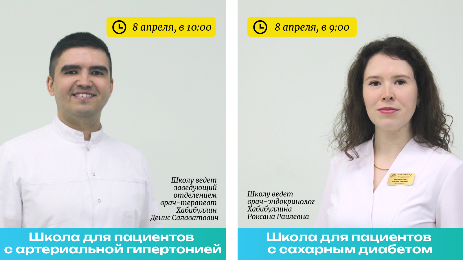 • в 10:00 – школа для пациентов с артериальной гипертонией (ведет заведующий отделением, врач-терапевт участковый Хабибуллин Денис Салаватович).